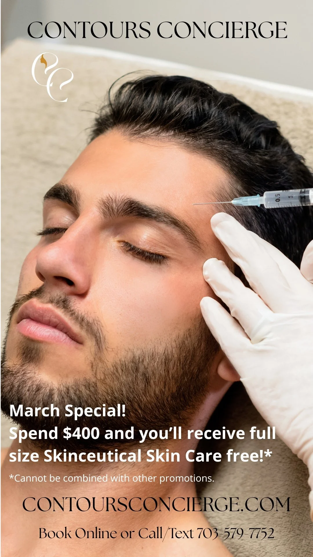 Every month, Contours Concierge offers a promotion. Check out this page each month to see what they are! Book your appointment to take advantage of the special or call/text 703-579-7752.